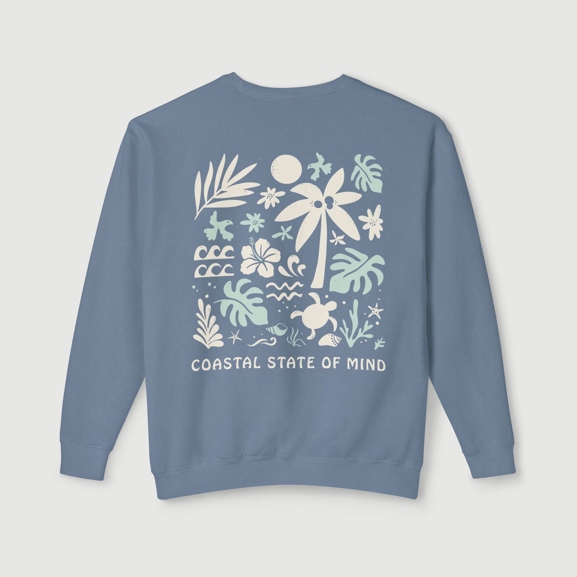 The Coastal State of Mind Crewneck is all about those coastal sea vibes. Perfect for lounging, beach walks, or grabbing your morning coffee by the beach. Featuring a unique ocean-inspired design, with serene colors it captures the essence of your love for the coast.